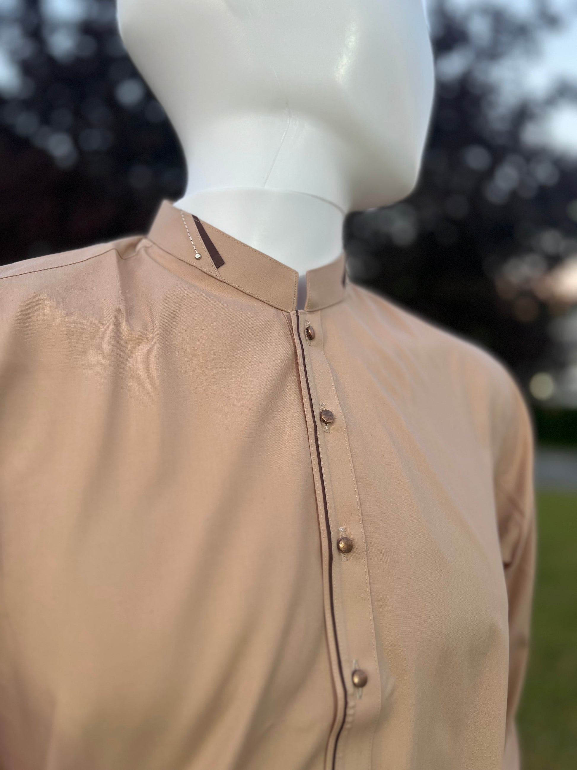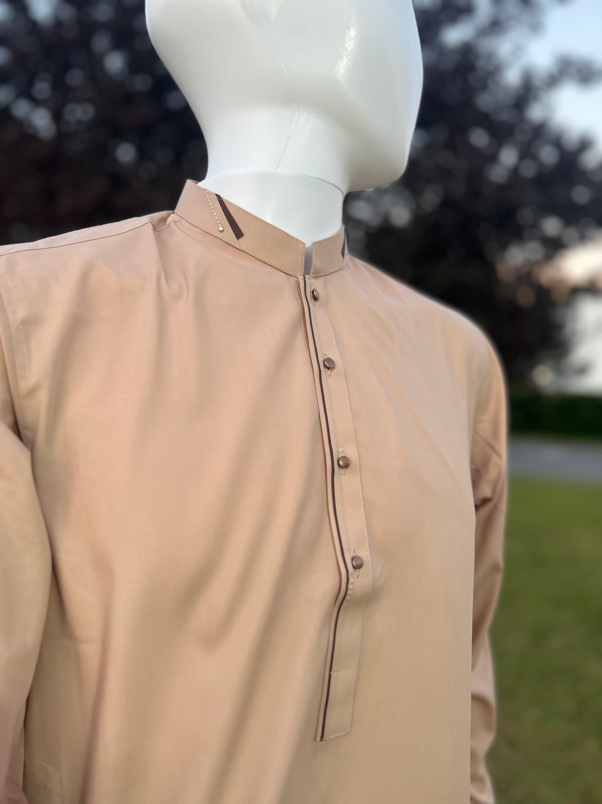 shade. Designed for durability and comfort, this attire showcases quality fabric with precise tailoring to ensure a flattering fit. Ideal for formal occasions, it provides a sophisticated look that honors cultural heritage while meeting modern fashion standards. Elevate your wardrobe with this expertly crafted ensemble that balances timeless appeal and contemporary refinement.